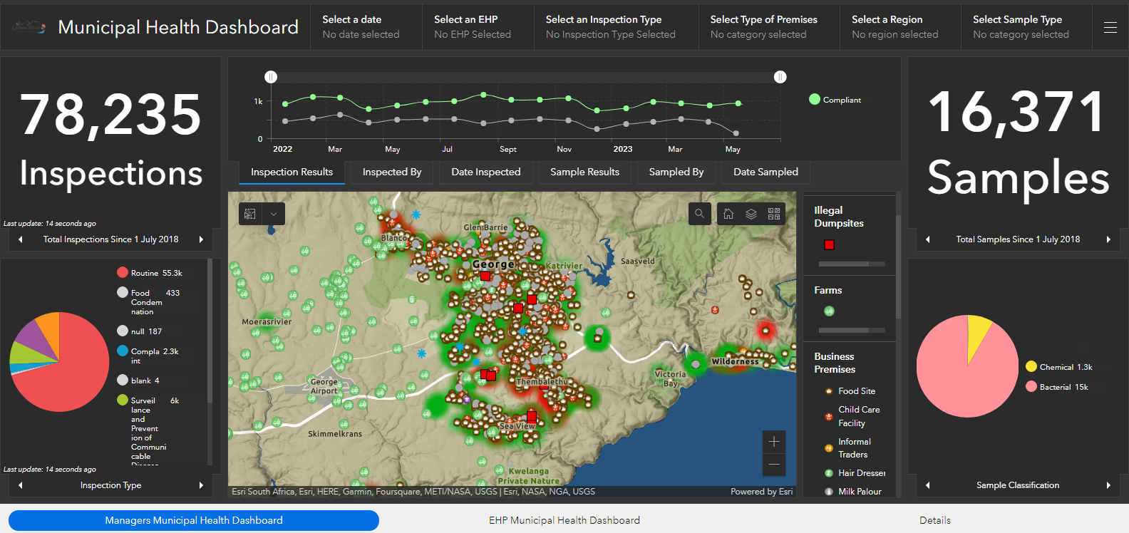 According to Clive Africa, GRDM Executive Manager for Community Services, “the dashboard aligns with Section 1 of the National Health Act, 2003 (Act 61 of 2003), which mandates Municipal Health Services to monitor various aspects such as water quality and safety, food control, waste management, premises health surveillance, disease prevention (excluding immunisations), vector control, pollution control, disposal of the dead, and chemical safety”.