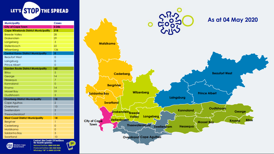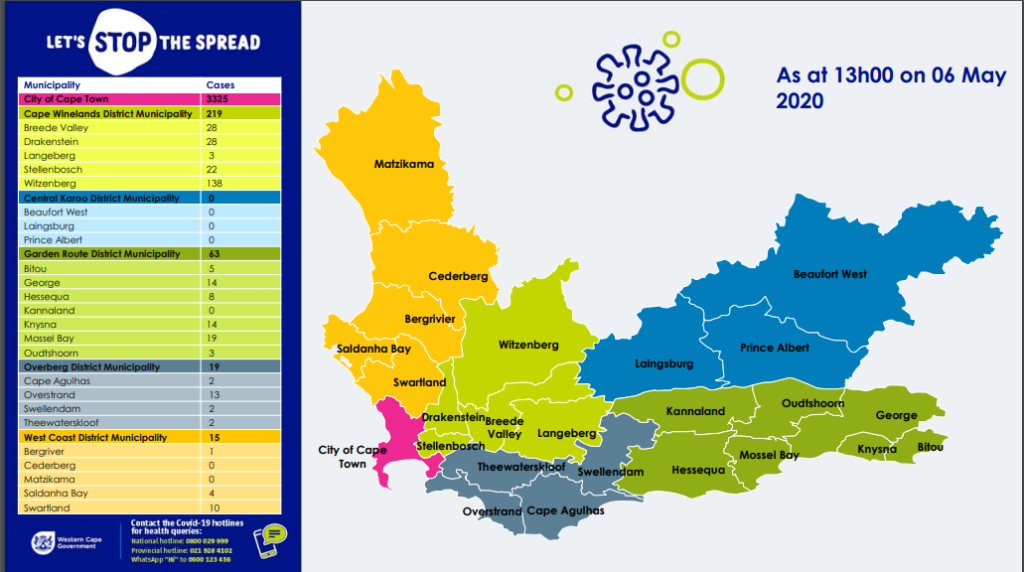 As of 1pm on 6 May, the Western Cape has recorded 3771 confirmed cases of COVID-19 infection.